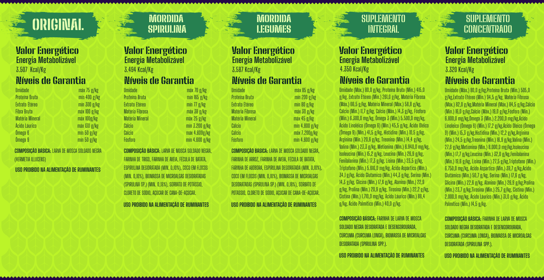 Original: Larvas BSF 100% puras e desidratadas - a proteína mais sustentável do planeta. Rica em Ácido Láurico, Ômega 6 e 9 para máxima nutrição natural.