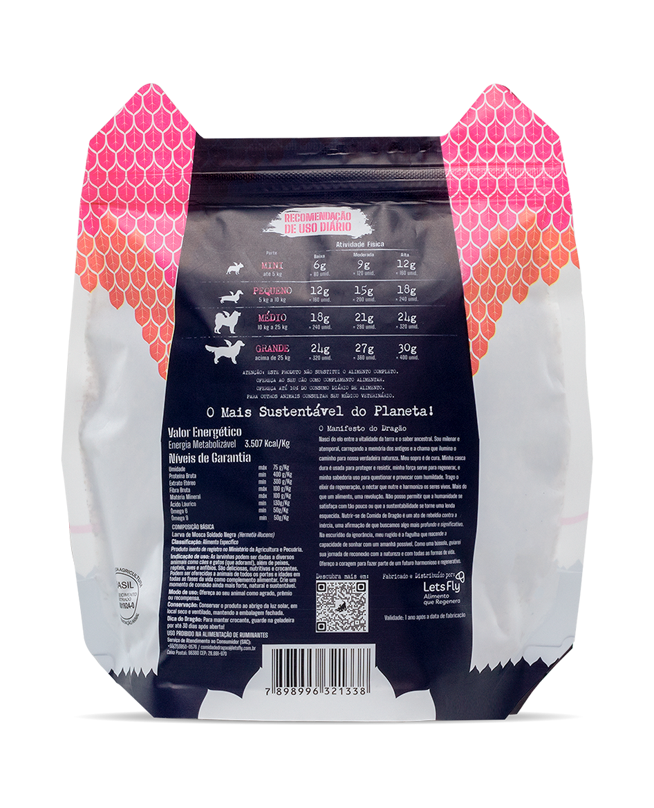 Comida de Dragão é feito à base de proteína de inseto, mais sustentável: reduz emissões, economiza água e regenera o meio ambiente.
