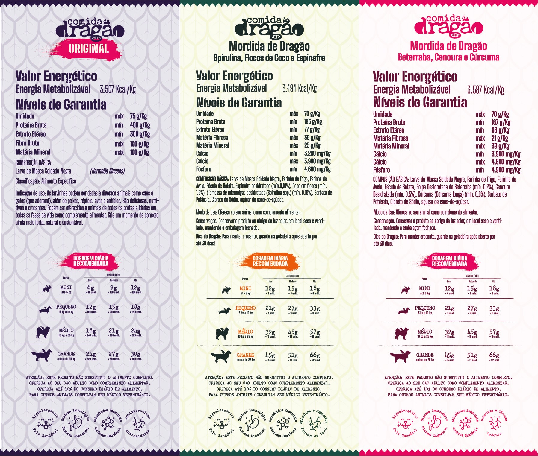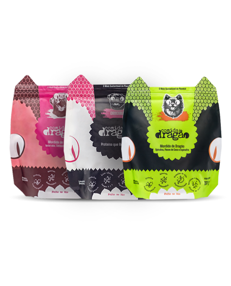 Descubra a linha de produtos lendários Comida de Dragão. Feitos à base das larvinhas mais famosas e nutritivas do Rio de Janeiro. Radical, sinistro e sustentável. Indicada para todos os tipos de Dragão. (Contém 3 unidades)