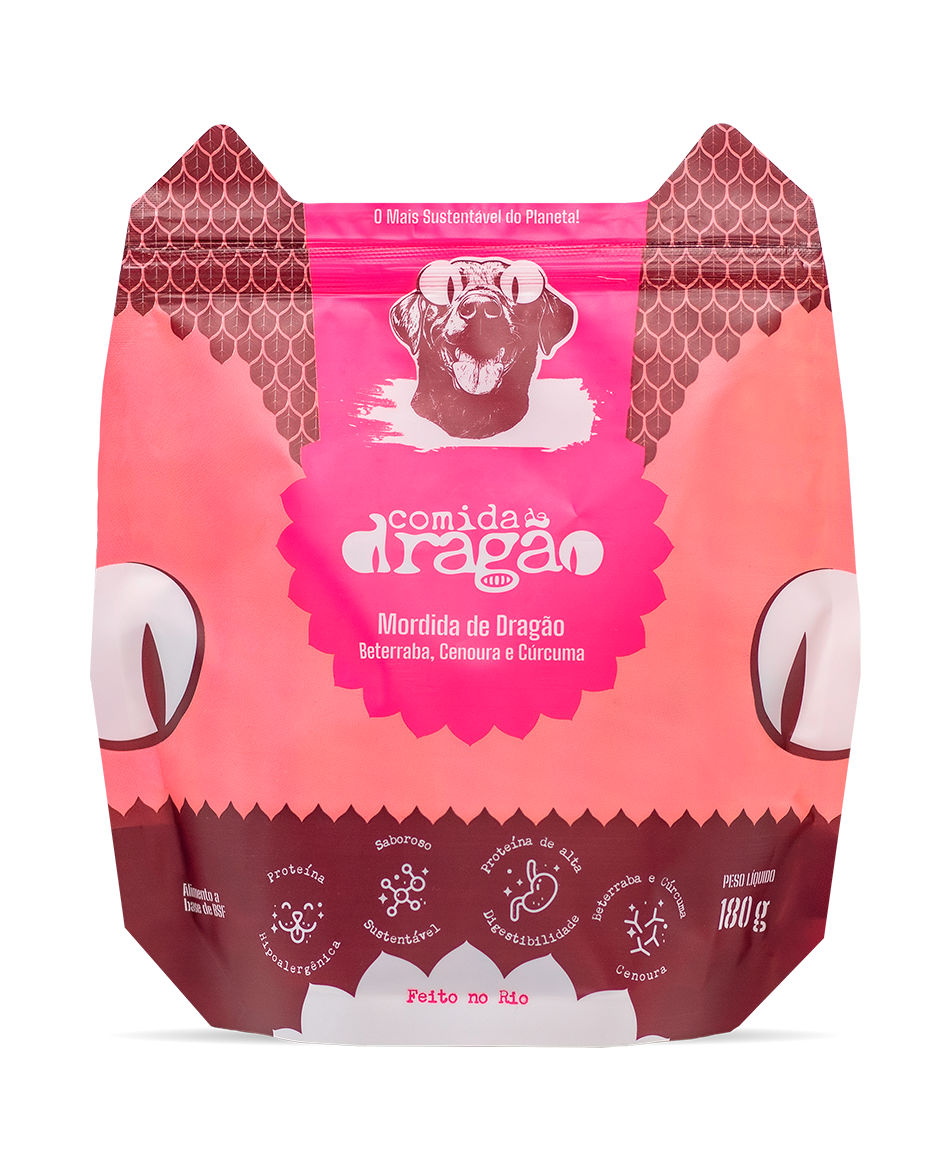 Snack sustentável feito a partir de Proteína de BSF com beterraba, cenoura e cúrcuma. Fibras para saúde intestinal, betacaroteno e ação anti-inflamatória natural. Snack ideal para treinamentos, passeios e recompensas nutritivas.